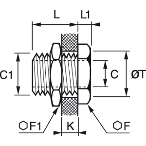 Für die Verbindung eines Innen- und eines Außengewindes durch Schottmontage.